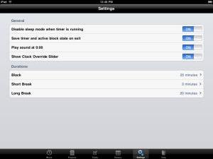 - Option to keep timer "running" when app is closed (note: addition of background timer end notifications will be added when iOS4 is available for iPad)