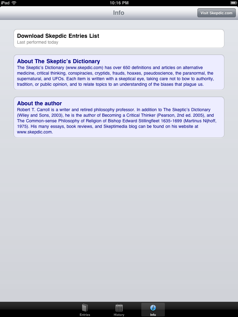 - All of Skeptic's Dictionary's comprehensive articles right at your fingertips